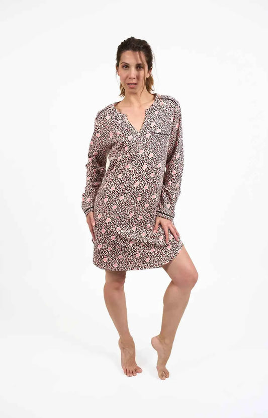 Chemise de nuit femme 100% coton col boutonné - COLEO