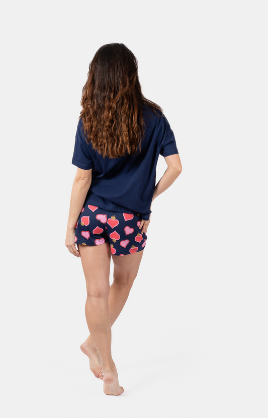 Pyjama femme court et t-shirt col rond oversize - 100% coton - MEXI