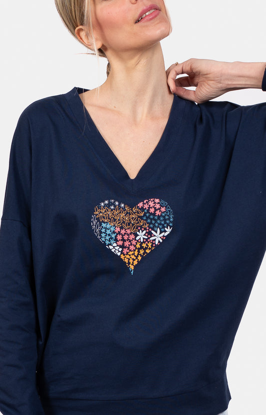 Pyjama long col V oversize - FLEUR