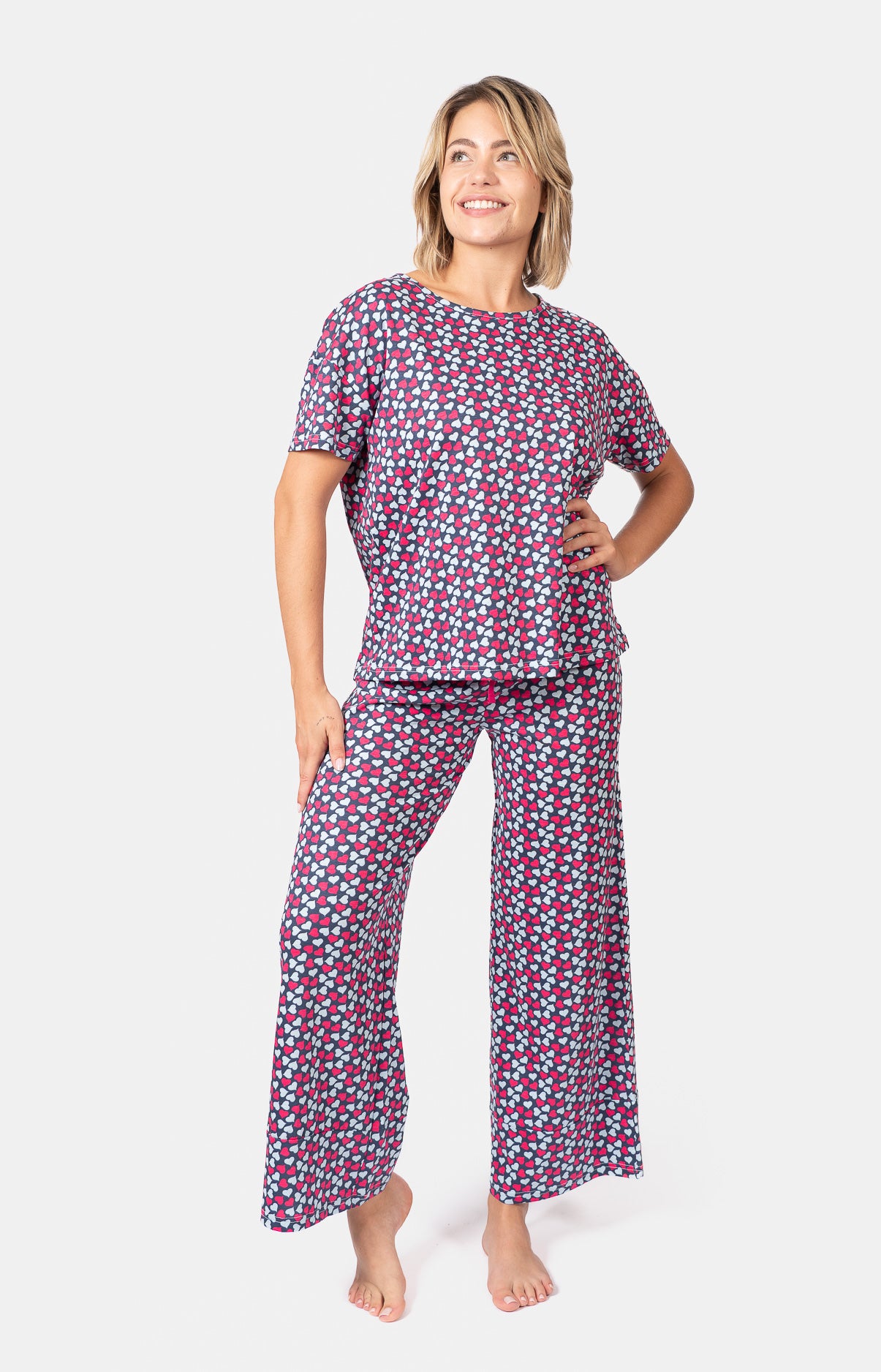 - Pyjama femme pantalon large en jersey 100% coton